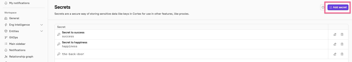 Edit secrets in the Cortex UI
