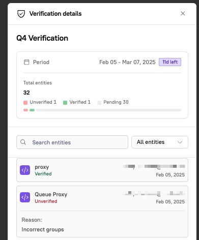 2. A side panel will appear, displaying all entities that this verification applies to:\